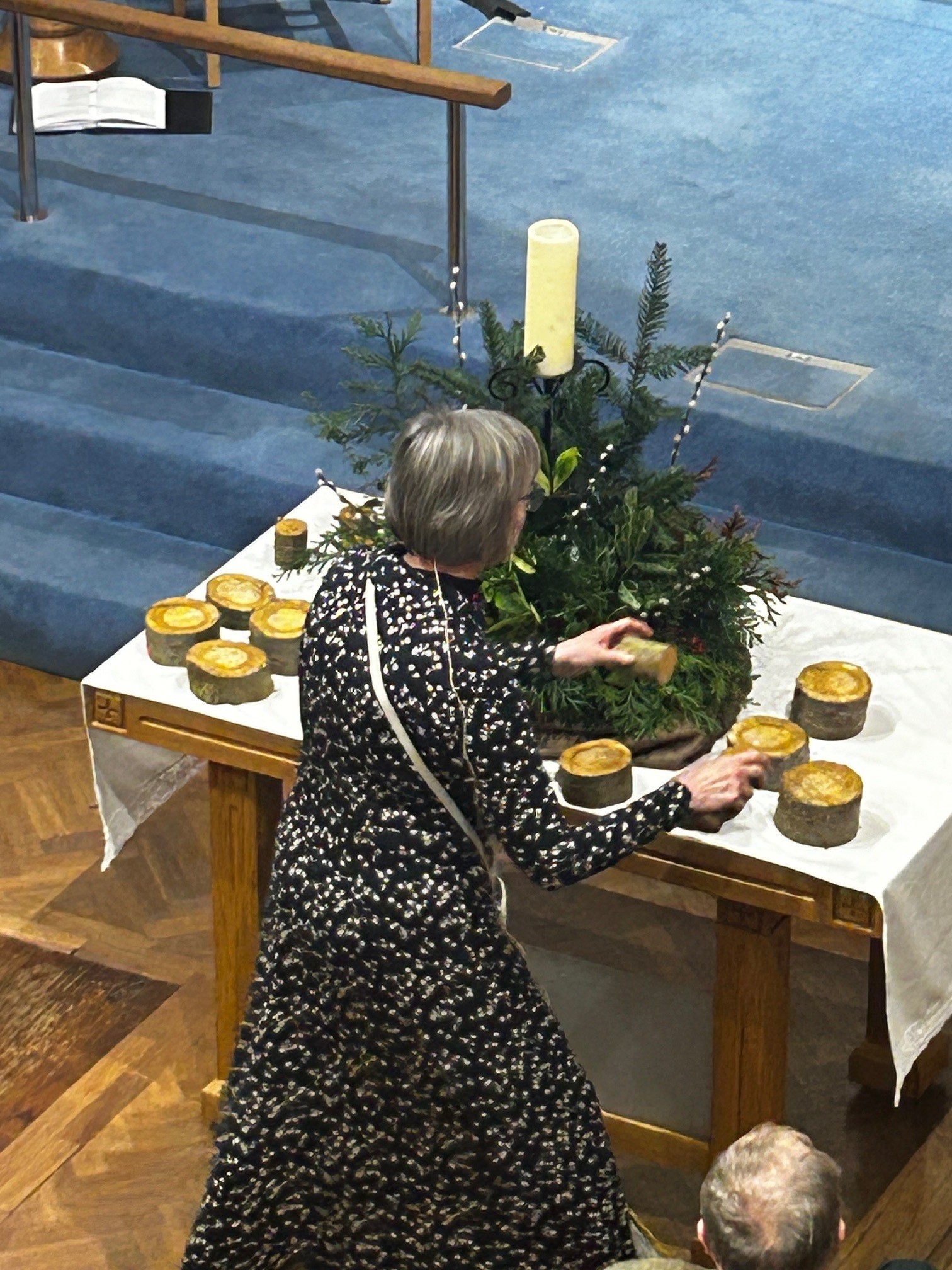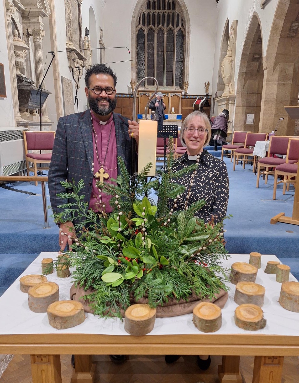During the service, there was a symbolic placing of tree rings around the Beacon in the Forest, a display made of greenery and a candle, each circle of tree representing each of the churches in the Minster Community and the gifts they bring.